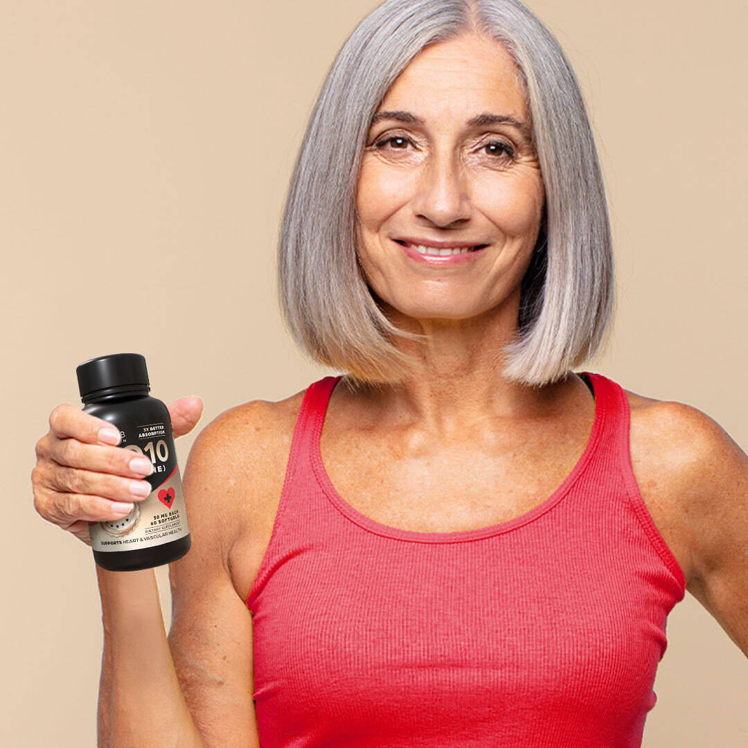 • Mejora la Salud Cardiovascular: Mejora la salud del corazón al actuar como un antioxidante que protege las células del daño oxidativo. La coenzima Q10 ha demostrado mejorar la función endotelial y reducir la inflamación, lo que protege tu corazón y reduce el riesgo de problemas cardíacos.