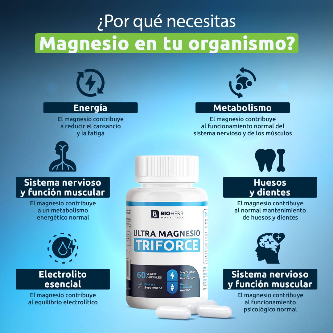 Este no es solo otro suplemento más; el Magnesio Tri Force es tu aliado secreto para enfrentar el caos diario con energía renovada.